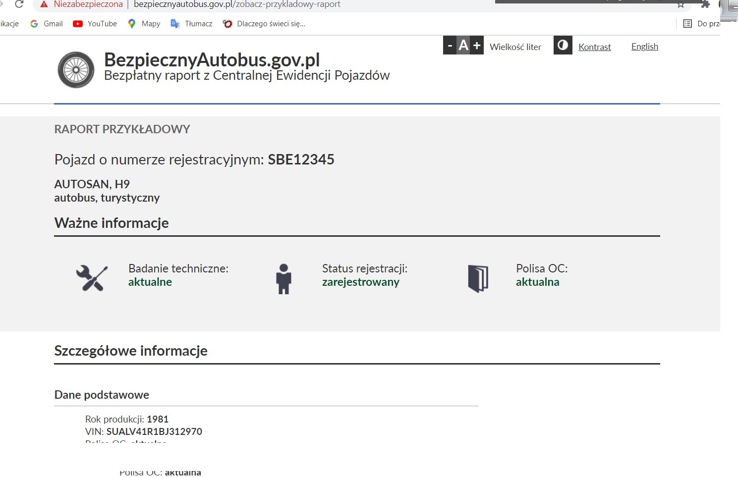 Można zrobić coś jeszcze. Przed samym wyjazdem można sprawdzić, czy autobus, którym będziemy się poruszać, przeszedł badania techniczne i czy ma opłacone OC. Aby to sprawdzić, wystarczy tylko wpisać nr rejestracyjny autobusu na stronie https://bezpiecznyautobus.gov.pl