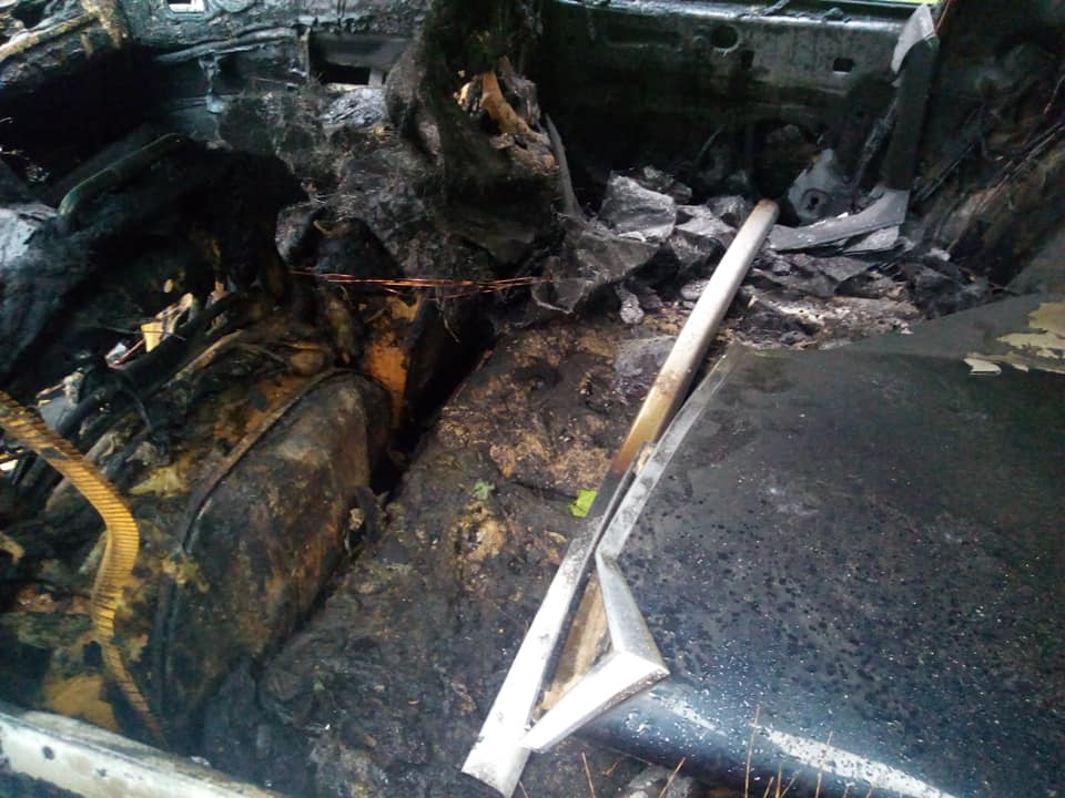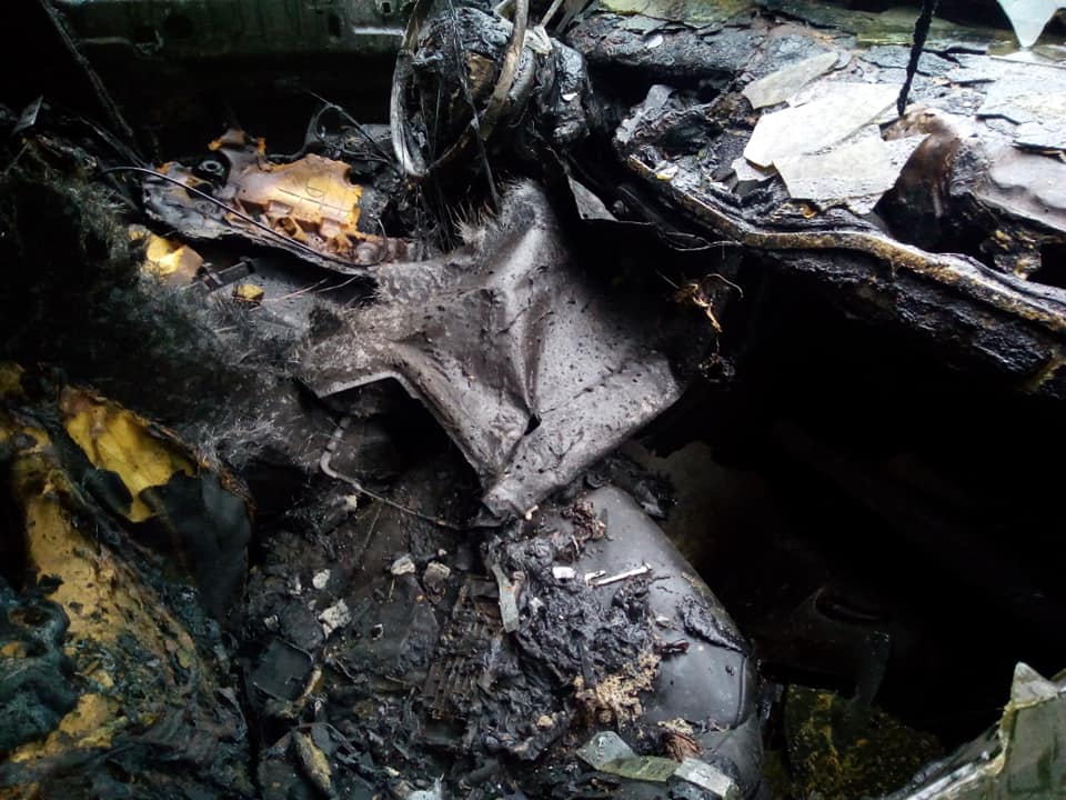 • Wnętrze samochodu zostało całkowicie zniszczone.
