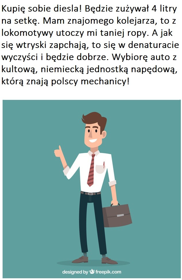 Diesel to nie jest auto dla osoby niedbałej. To samochód dla kogoś, kto nie żałuje na wymianę filtrów paliwa i powietrza, kto wykonuje dodatkowe czynności serwisowe (czyszczenie układu wtryskowego, czyszczenie DPF), kto odpowiednio eksploatuje auto z turbiną i kołem dwumasowym. Trzeba pamiętać, że większość używanych diesli, z przebiegiem 200 tys. km to wielka mina przeciwpiechotna dla nowego nabywcy.