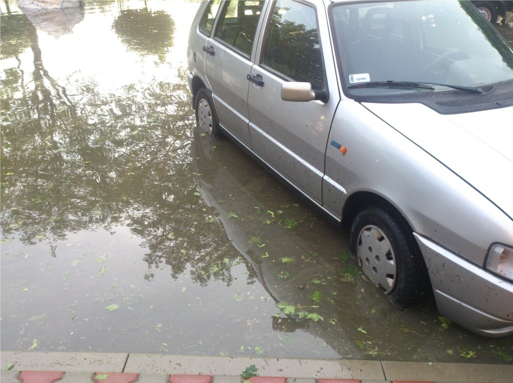 – możliwością uszkodzenia samochodu gradem i zalania go, co może doprowadzić do całkowitego zniszczenia silnika (o tym dalej)
