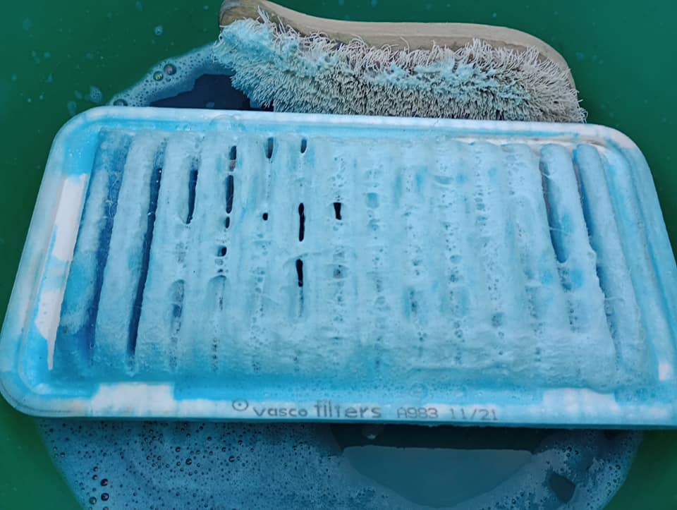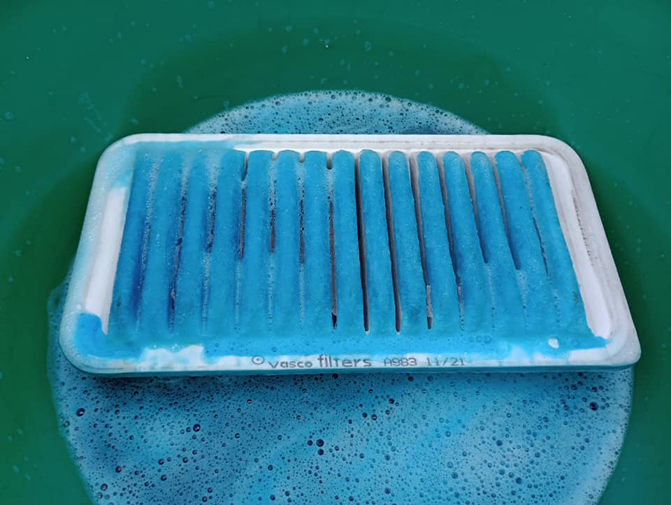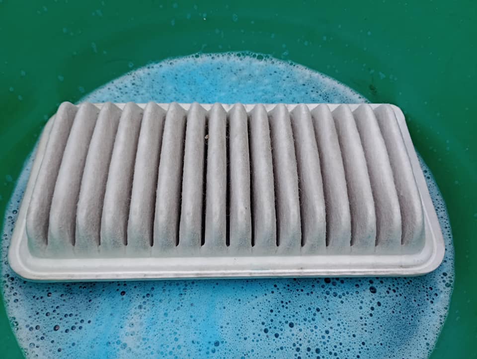 Czyścimy filtr powietrza. Wrzucę go do mocnego roztworu piany aktywnej i letniej wody.