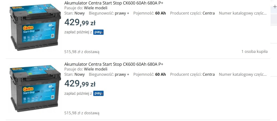 Tymczasem dobry, markowy, standardowy akumulator startowy o pojemności kosztuje 280 – 320 zł. Polski Jenox, polska Centra i wiele innych.