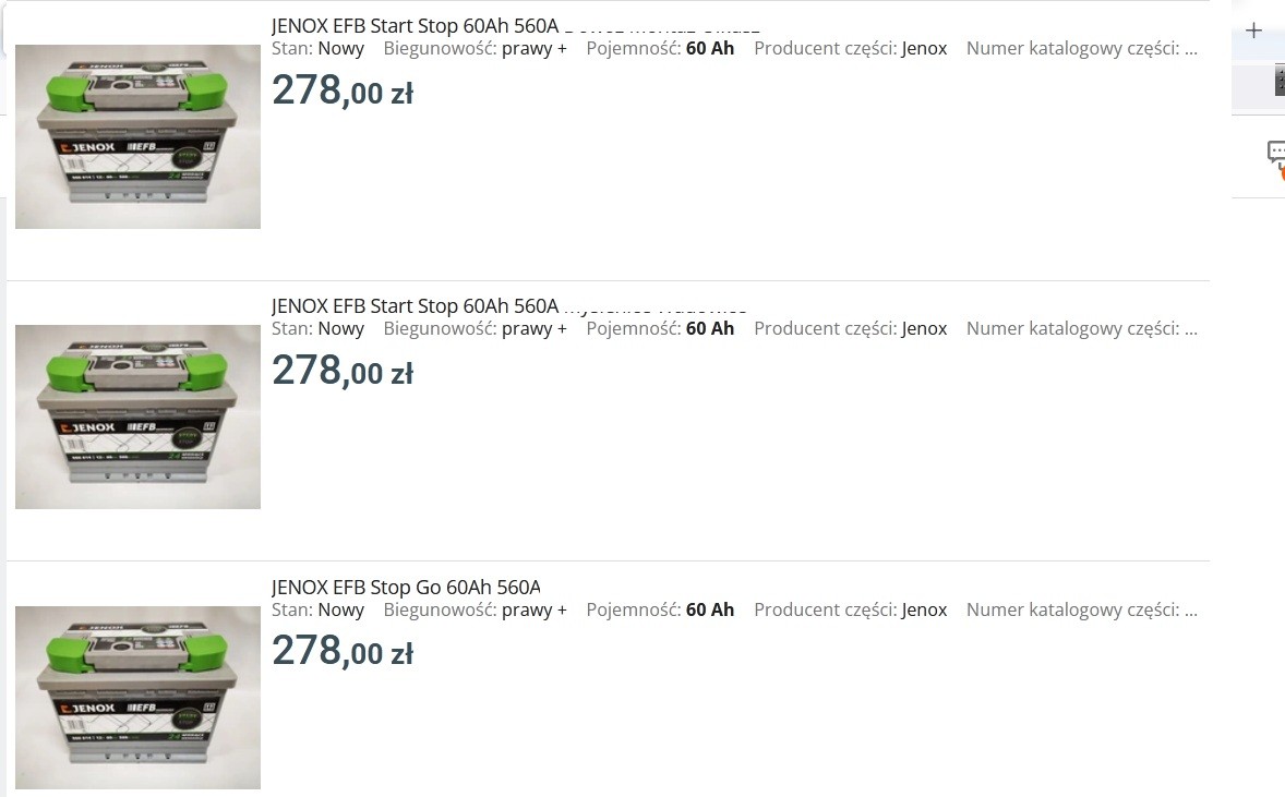 Dobry akumulator EFB o pojemności 60Ah kupimy za 278 złotych.