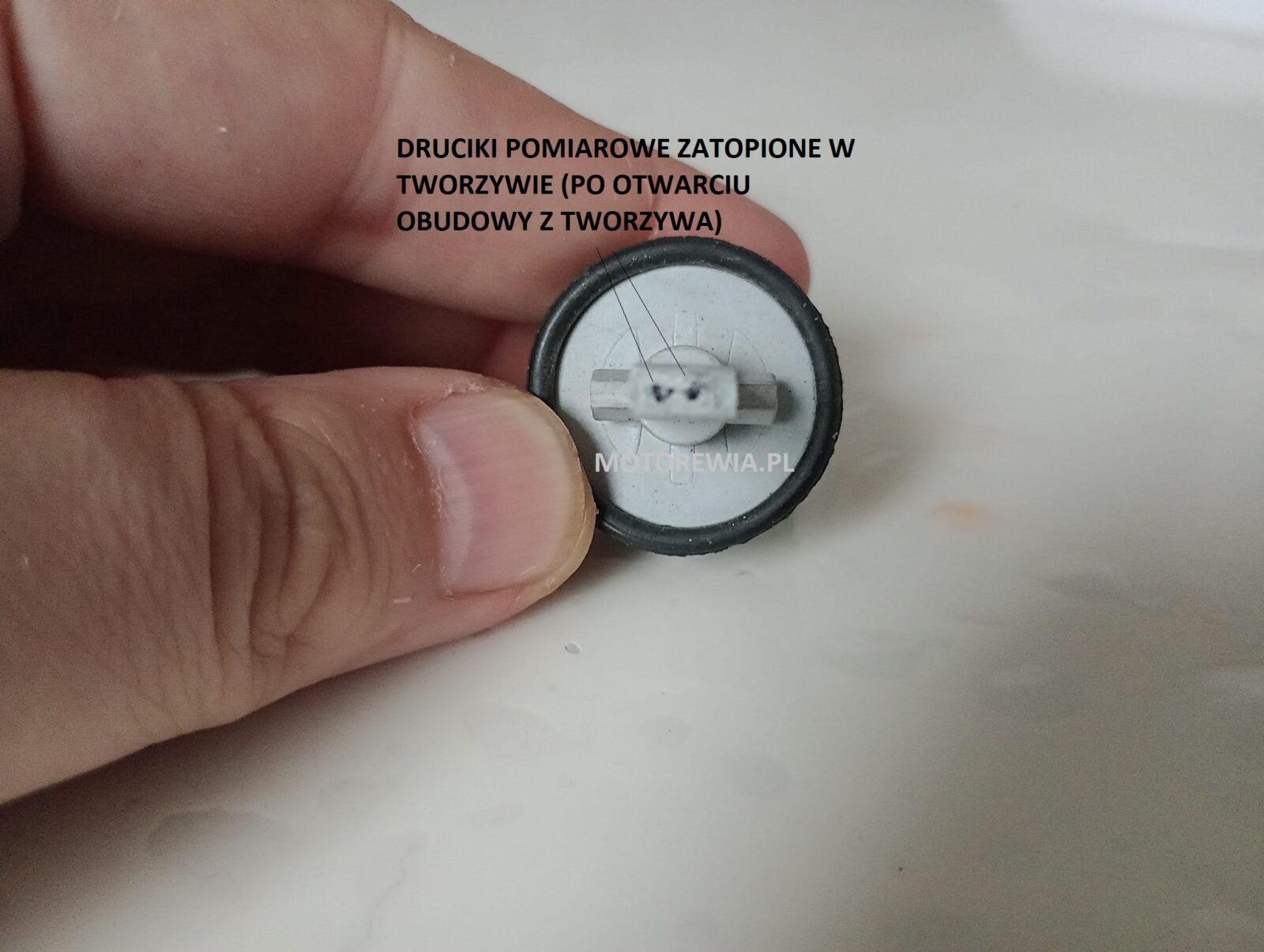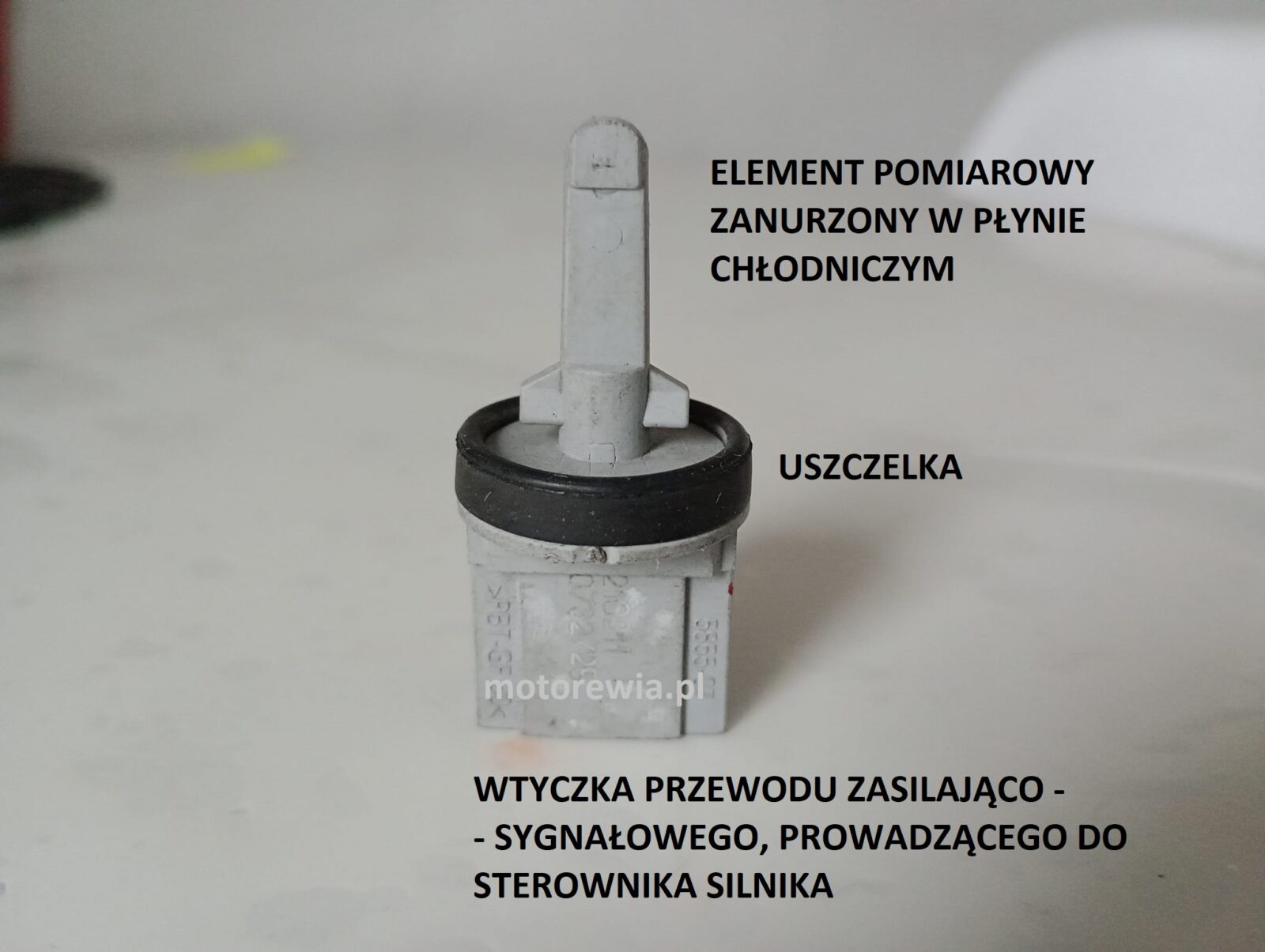 Jak działa czujnik? W części pomiarowej znajdują się dwa metalowe druty. Są one zanurzone w płynie chłodniczym. Wykonano je z odpowiednich materiałów. Druty pełnią rolę oporników. Im wyższa temperatura płynu chłodniczego, tym mniejsza oporność drutów. Wartości oporności są odczytywane przez oprogramowanie sterownika silnika.
