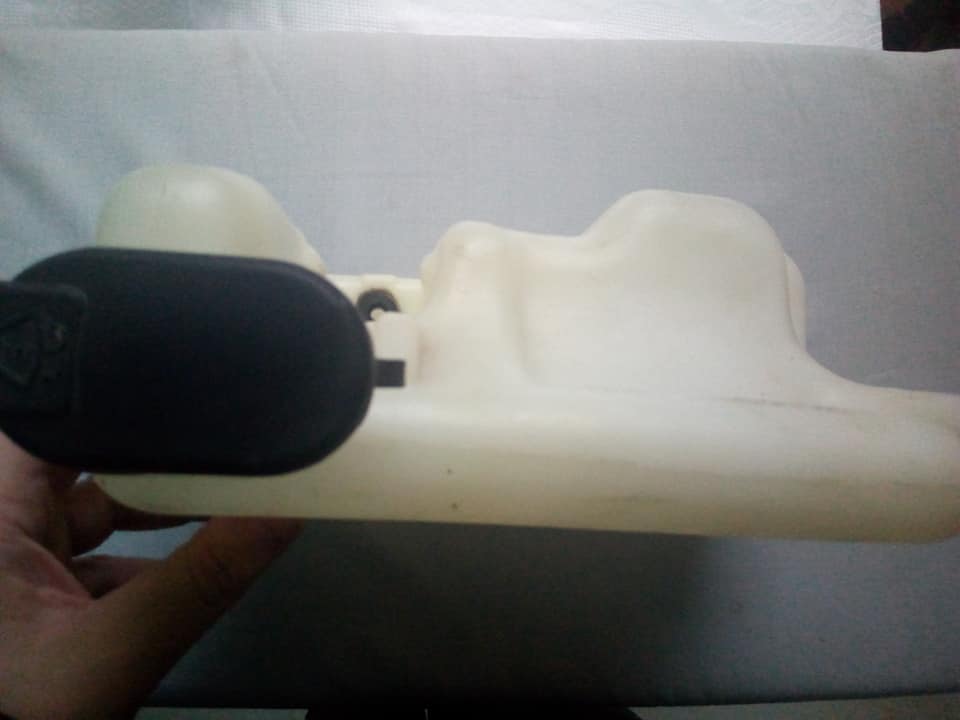 • No właśnie, nowy zbiorniczek. Albo używany z demontażu. W tym przypadku akurat warto kupić zbiorniczek z demontażu. To tylko tworzywo, zatem się nie starzeje, bo nie jest wystawione na działanie słońca czy wysokiej temperatury. Za to starzeć może się uszczelka, która znajduje się pomiędzy zbiorniczkiem a pompką elektryczną. Warto ją wymienić.
