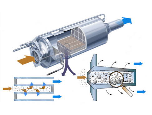 Spaliny, usuwane z silnika, wyrzucane są pod dużym ciśnieniem. „Przeciskają się” przez mikrootwory w kanalikach i są kierowane do wydechu. A na ściankach mikrokanalików zostają cząsteczki sadzy.
